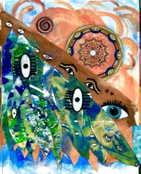 The Eschatonic Triptych is an ArtsWa funded series of three large-format, fabric-bound artist books that combine collage, acrylic painting, and poetry with apocalyptic imagery from the Bible and other memetic references.